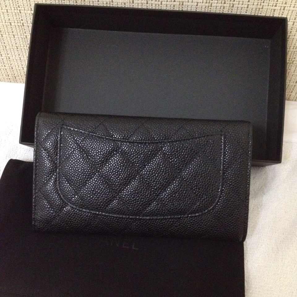 [配件-包] 香奈兒 經典魚子醬牛皮雙C金LOGO菱格紋三折長夾(黑)