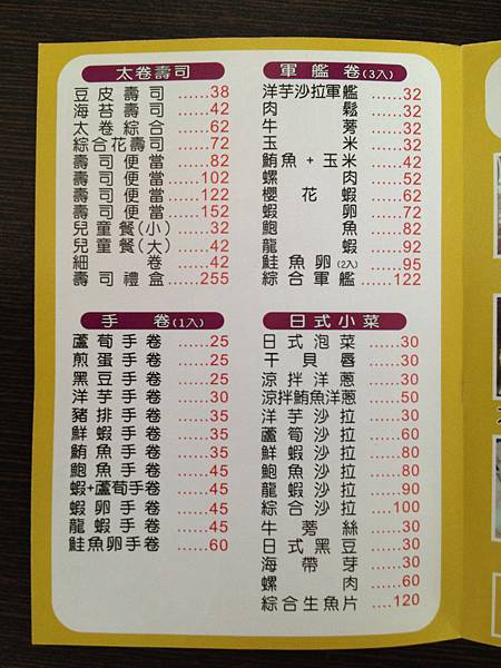 壽司種類及價位~
